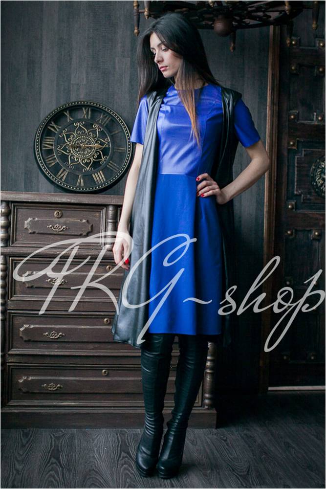 Платье из эко кожи с полиэстером, василек
