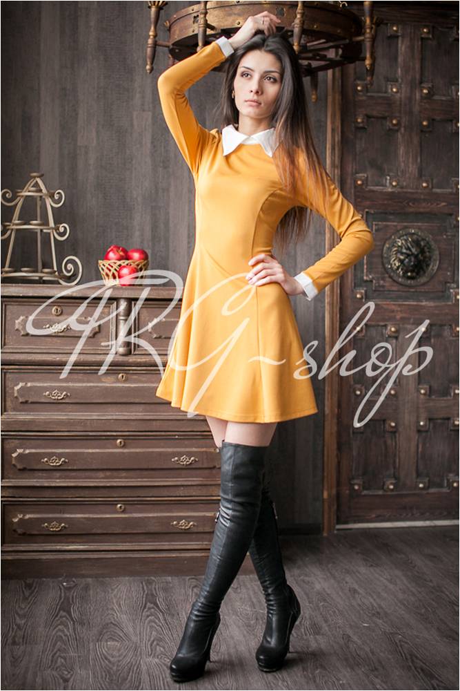 Платье с белым воротником, ВАСИЛЬКОВОЕ