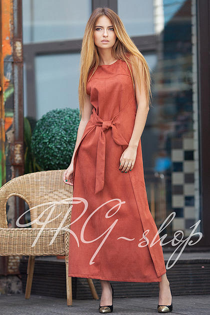 Описание: Платье-накидка выполнено из мягкой двойной замши, нестандартного кроя. Внутренний пояс выполнен на резинке с прорезями для пуговицы, что позволяет посадить платье на любой размер.