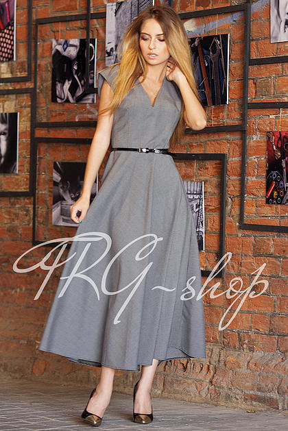 Описание: Платье с V-образным вырезом из плотного хлопкового материала в мелкую клетку. Отрезное по линии талии. Юбка полусолнце с карманами