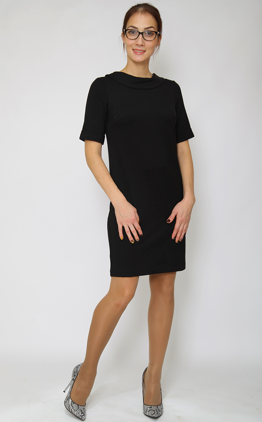 Платье прямого силуэта, с развернутым воротником.