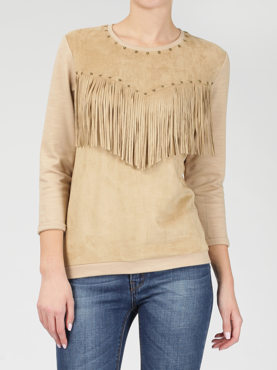 - спереди кокетка с бахромой и декоративными клепками