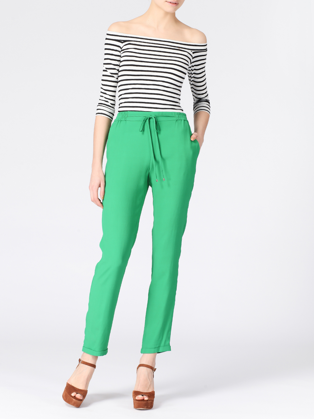 - узкие укороченные брюки с отворотами по низу