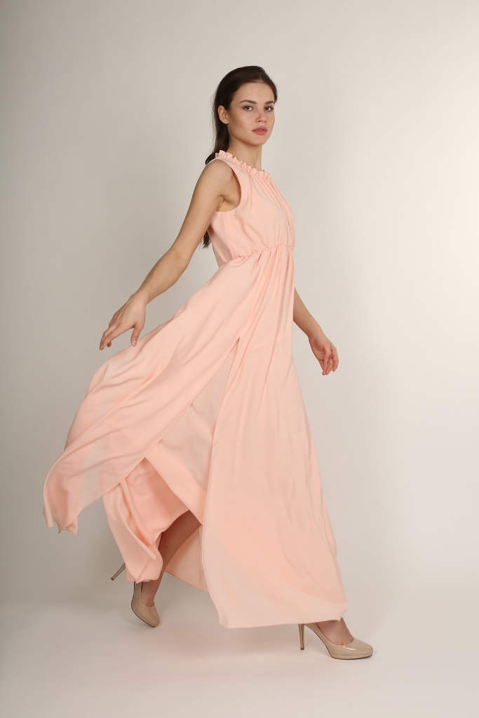 В тренде этого сезона остается очень модная пастельная гамма, которая способна любому изделию придать особую нежность, шарм и утонченность. Вечернее длинное платье нежно-персикового цвета может стать прекрасным вариантом для выхода в свет.