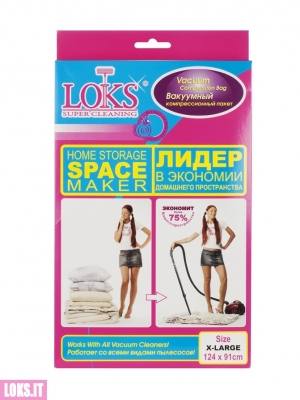 Вакуумный компрессионный пакет предназначен для компактного хранения и транспортировки постельного белья, одежды, мягких игрушек. Позволяет уменьшить объем занимаемого пространства на 75%. Работает со всеми видами пылесосов!