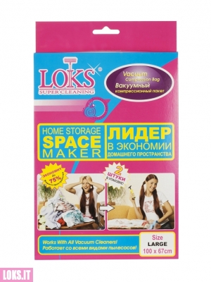 Вакуумный компрессионный пакет предназначен для компактного хранения и транспортировки постельного белья, одежды, мягких игрушек. Позволяет уменьшить объем занимаемого пространства на 75%. Работает со всеми видами пылесосов!
